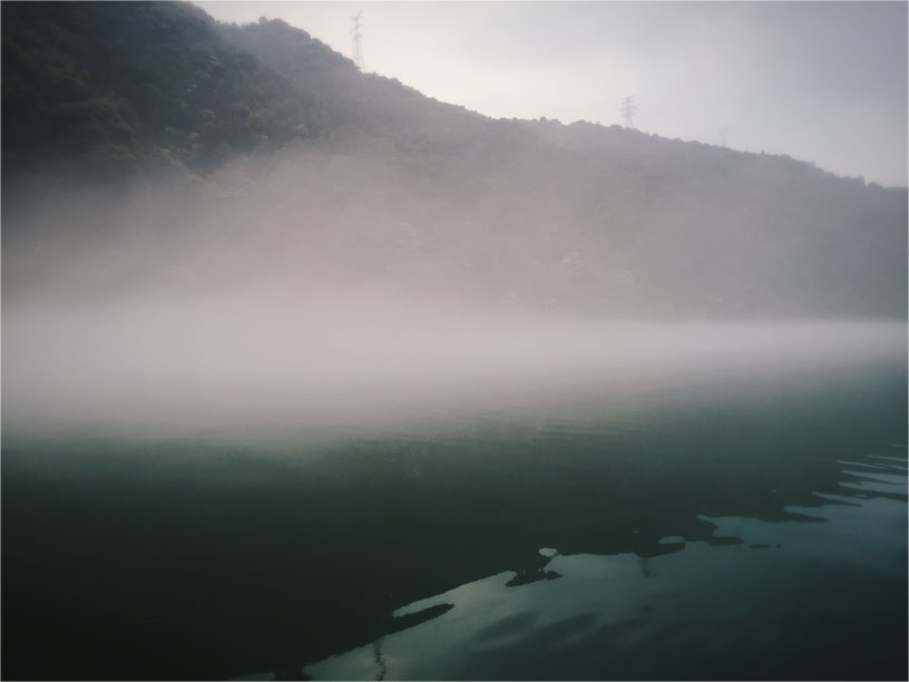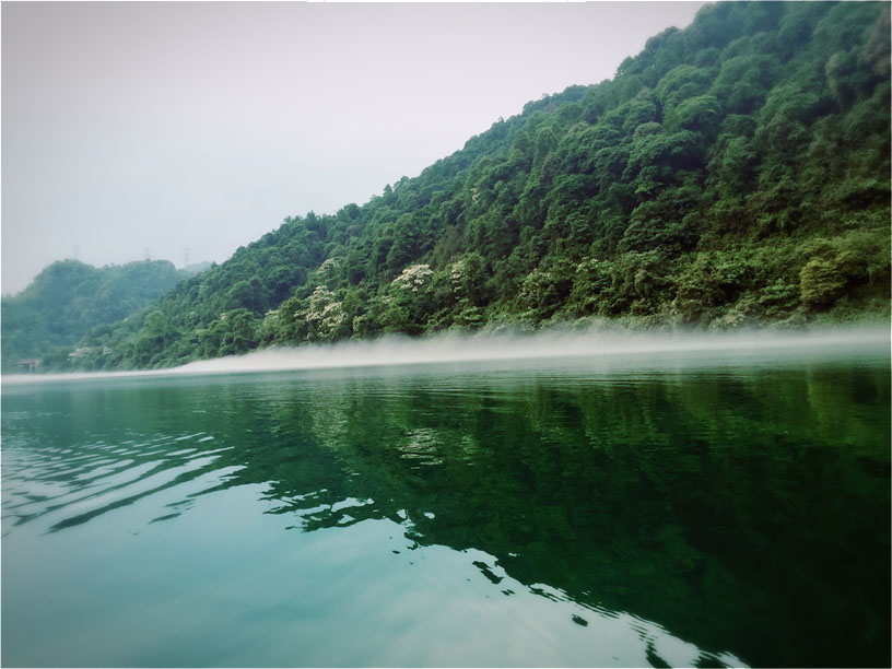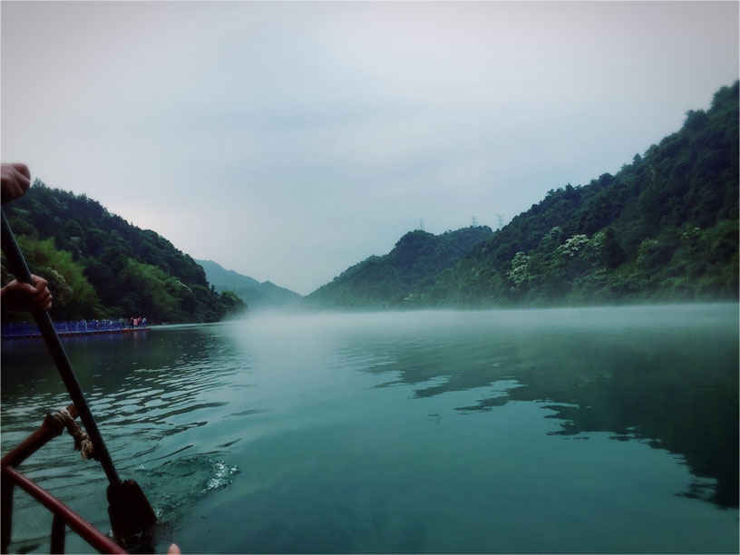 7、我们踏上划艇,此刻天色也开始朦胧起来了,我们伴随此刻的朦胧一起出发,犹如我们被仙人吹了一口仙气,打开了我们的仙眼,让仙境摊开在我们眼前,一览无遗